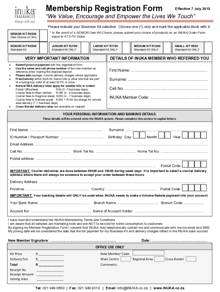 Membership Registration FormEffective 7 July 2015We Value, Encourage and Empower the Lives We Touch Please indicate your Business Kit selection. Choose one (1) only and mark the applicable block with