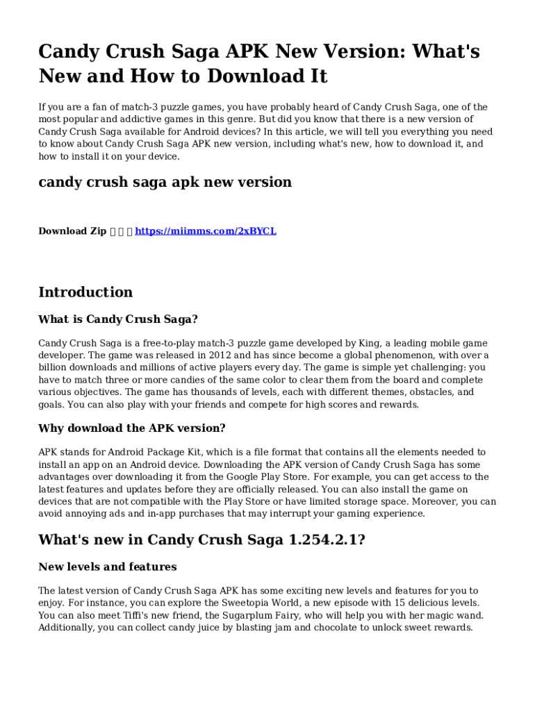 Candy Crush Saga APK New Version: What\'s New and How to Download It If you are a fan of match3 puzzle games, you have probably heard of Candy Crush Saga, one of the most popular and addictive games