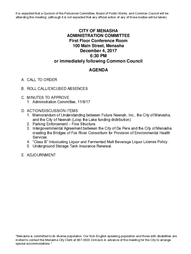 Get the free Administration Committee, 11/6/17