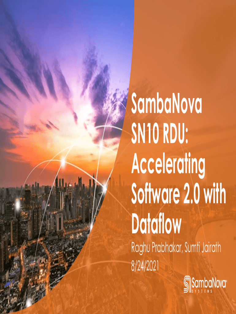 SambaNova SN10 RDU: Accelerating Software 2.0 with Dataflow Raghu Prabhakar, Sumti Jairath 8/24/2021Safe Harbor Statement The following is intended to outline our general product direction at this