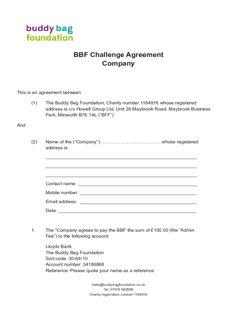 (1)The Buddy Bag Foundation, Charity number 1164916 whose registered