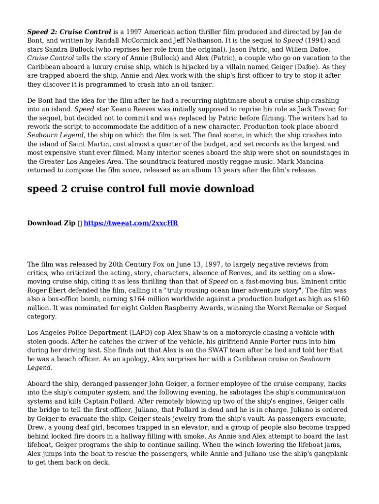 Fill out your speed 2 cruise control online with pdfFiller!