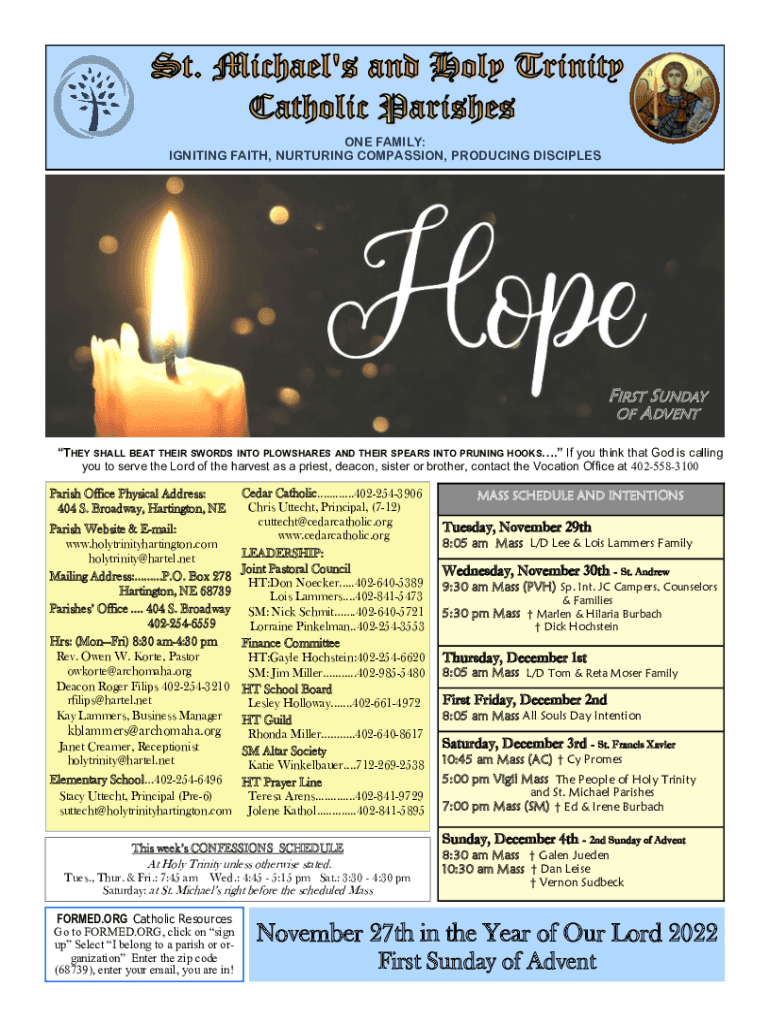 ONE FAMILY: IGNITING FAITH, NURTURING COMPASSION, PRODUCING DISCIPLESFIRST SUNDAY OF ADVENT THEY SHALL BEAT THEIR SWORDS INTO PLOWSHARES AND THEIR SPEARS INTO PRUNING HOOKS. If you think that God