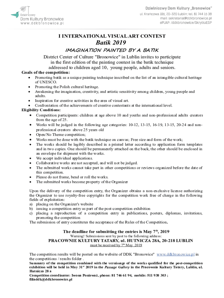 I INTERNATIONAL VISUAL ART Contestation 2019IMAGINATION PAINTED BY A BATIK