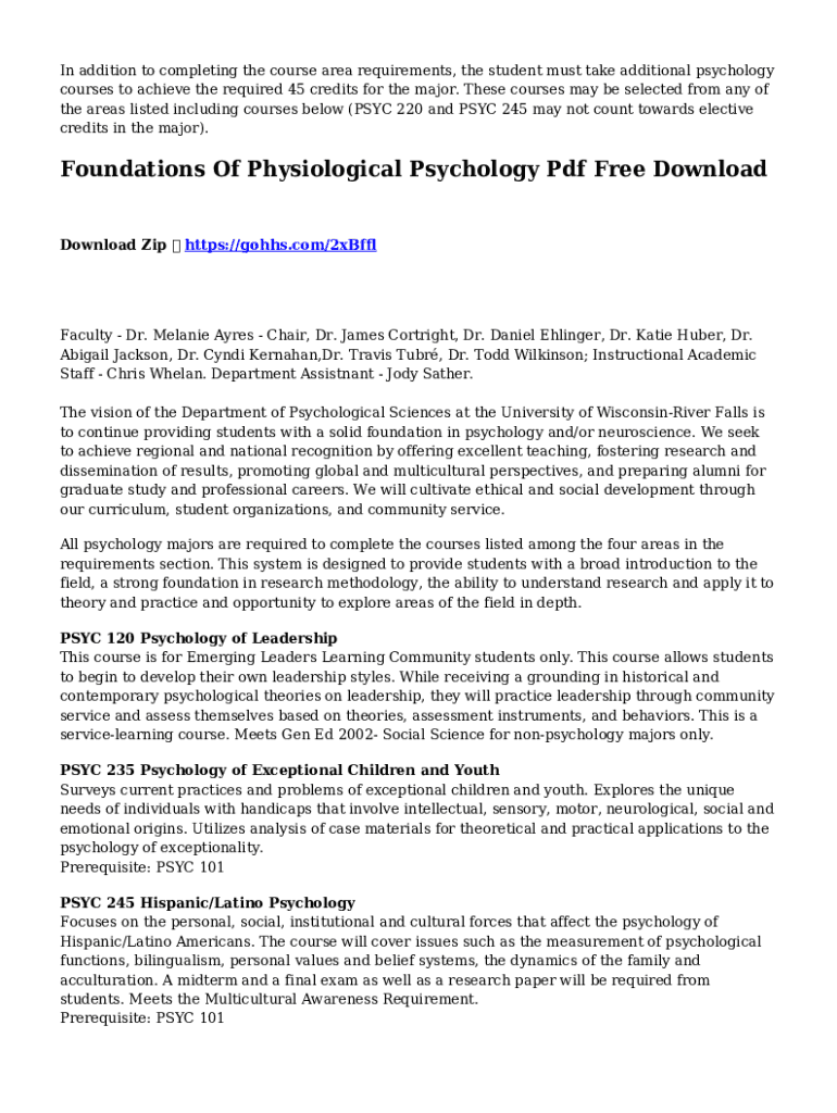 Get the Foundations Of Physiological Psychology Pdf Free Download