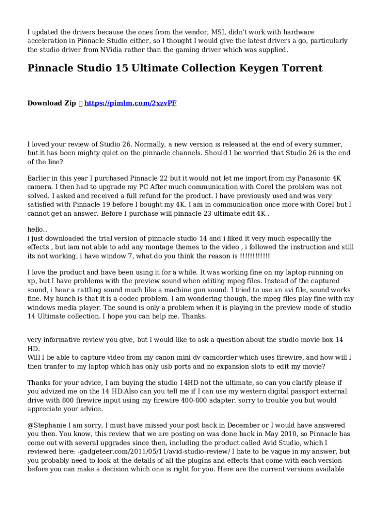 acceleration in Pinnacle Studio either, so I thought I would give the latest drivers a go, particularly