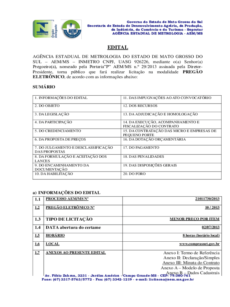 Obtenha o gratuito AEM / MS - Documentos