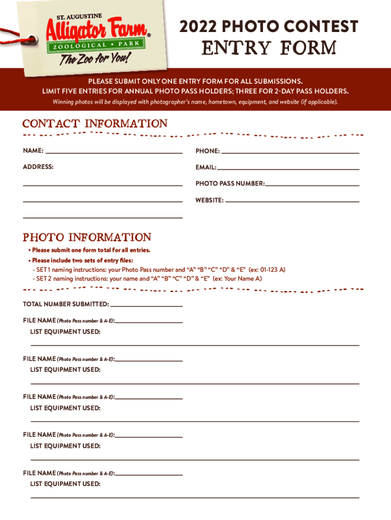 To fill out a nature photo contest entry, participants typically need to complete an entry form with their personal information, attach their photograph, and adhere to the specific contest guidelines regarding format and submission.