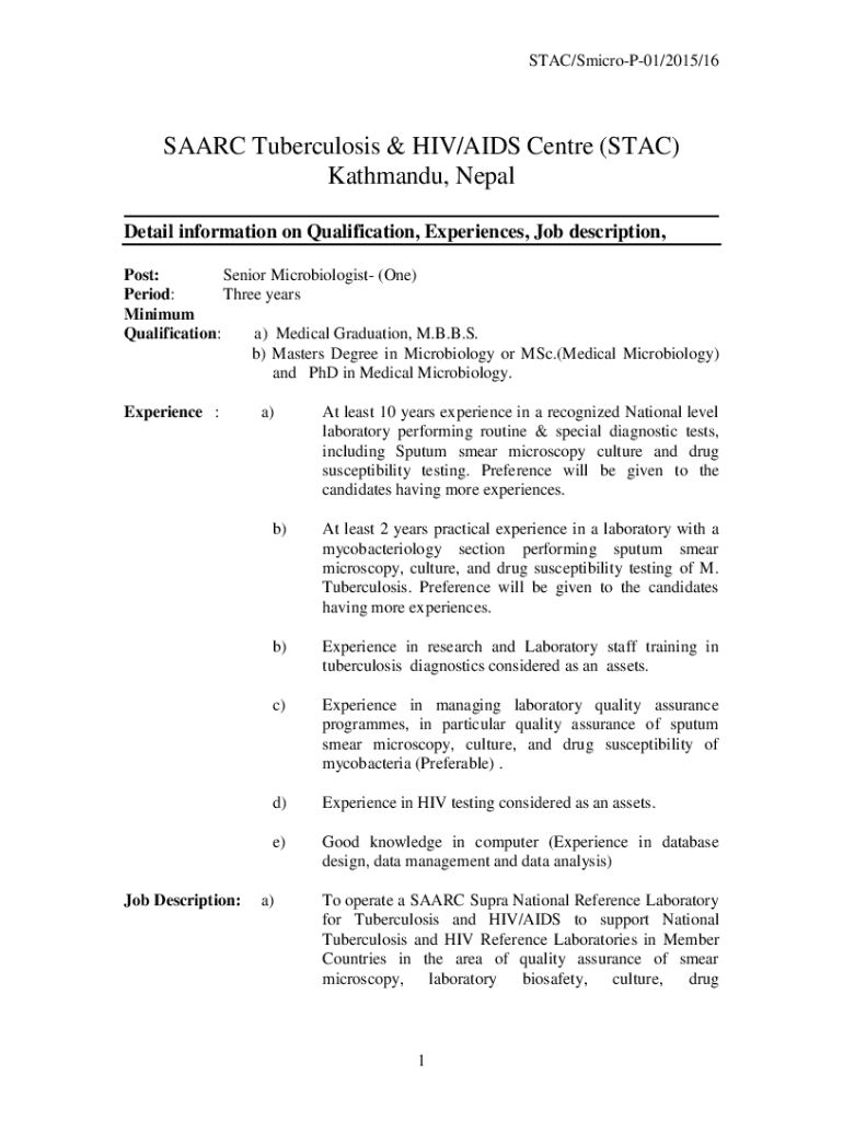 STAR/SmicroP01/2015/16SAARC Tuberculosis & HIV/AIDS Center (STAR)