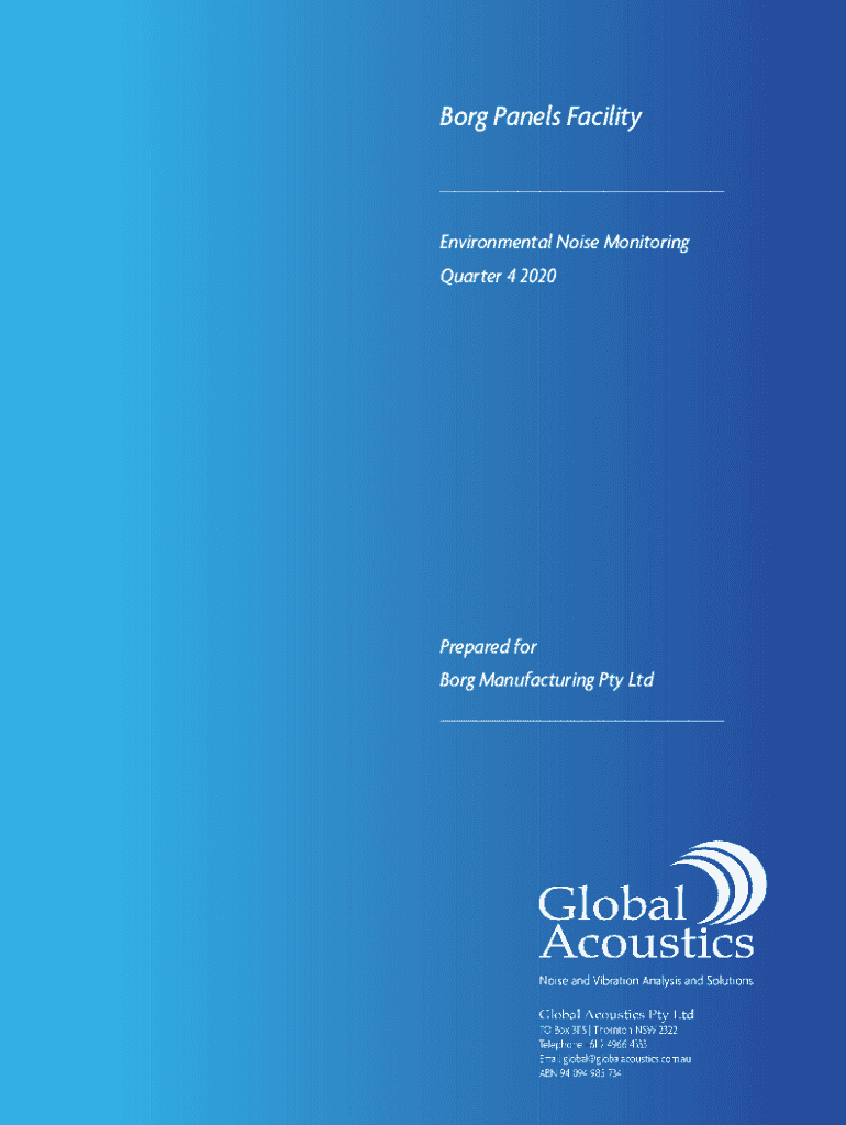 Borg Panels Facility ___Environmental Noise Monitoring Quarter 4 2020Prepared for Borg Manufacturing Pty Ltd ___Borg Panels Facility Environmental Noise Monitoring Quarter 4 2020 20289_R01_RevAPage