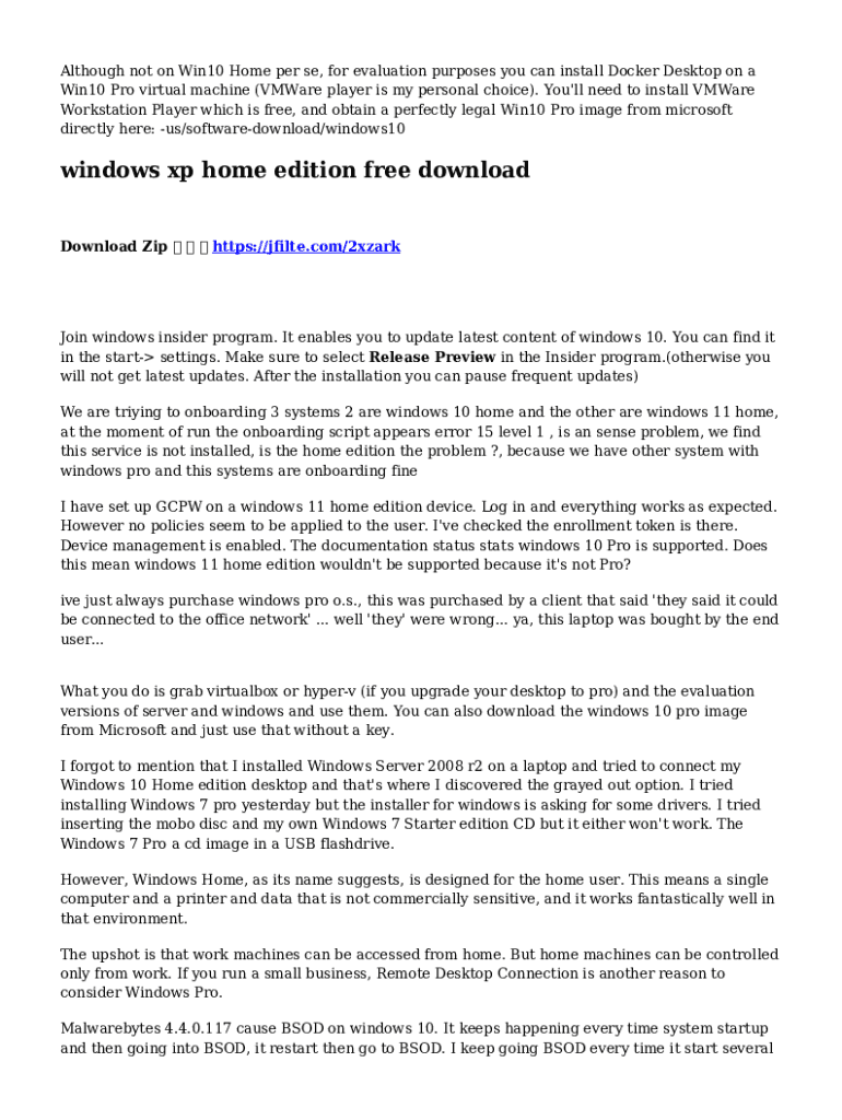 Although not on Win10 Home per se, for evaluation purposes you can install Docker Desktop on a Win10 Pro virtual machine (VMWare player is my personal choice). You\'ll need to install VMWare Workstation