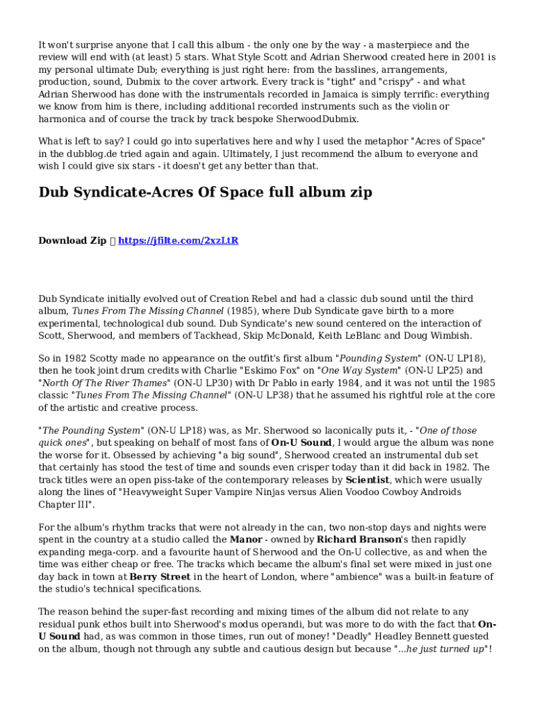 It won\'t surprise anyone that I call this album the only one by the way a masterpiece and the review will end with (at least) 5 stars. What Style Scott and Adrian Sherwood created here in 2001 is
