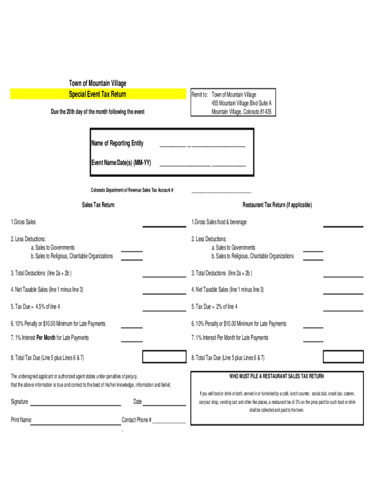 Get the free Town of Mountain Village Special Event Tax Return