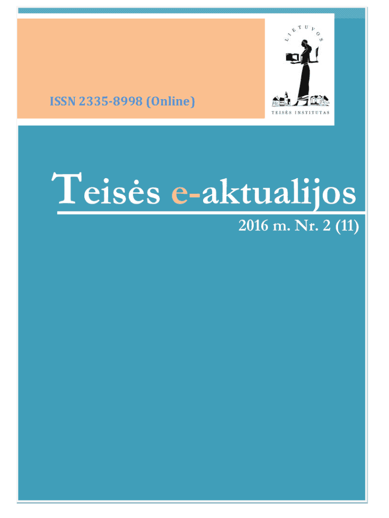 ISSN 23358998 (Online)Teiss eaktualijos2016 m. Nr. 2 (11)1Teiss eaktualijos. 2016 m. Nr. 2Teiss eaktualijos, tai Internetinis leidinys, kuriame skelbiami Lietuvos teiss instituto mokslo darbuotoj
