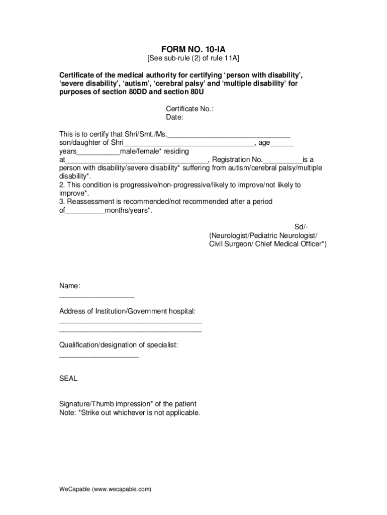 To fill out Form 10-IA, taxpayers need to provide their personal details, business information, and specifics about the deductions they are claiming under the relevant sections of the Income Tax Act.
