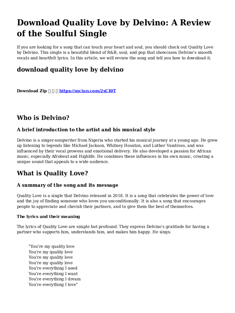 Download Quality Love by Delvino: A Review of the Soulful Single If you are looking for a song that can touch your heart and soul, you should check out Quality Love by Delvino. This single is a beautiful