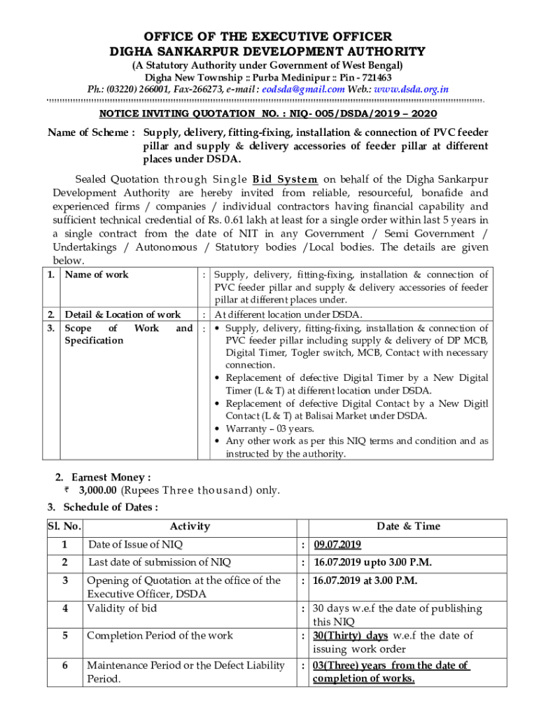 OFFICE OF THE EXECUTIVE OFFICER DIGHA SANKARPUR DEVELOPMENT AUTHORITY(A Statutory Authority under Government of West Bengal) Digha New Township :: Purba Medinipur :: Pin 721463 Ph.: (03220) 266001,