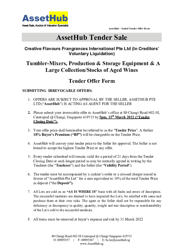 Assets SealedTender Offer FormAssetHub Tender Sale