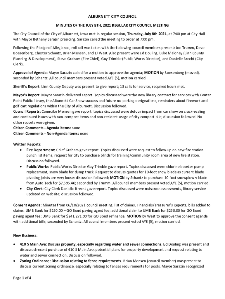 MINUTES OF THE JULY 8TH, 2021 REGULAR CITY COUNCIL MEETING