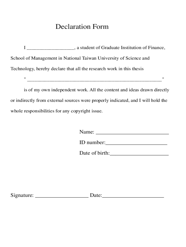 Declaration Form I ___, a student of Graduate Institution of Finance, School of Management in National Taiwan University of Science and Technology, hereby declare that all the research work in this