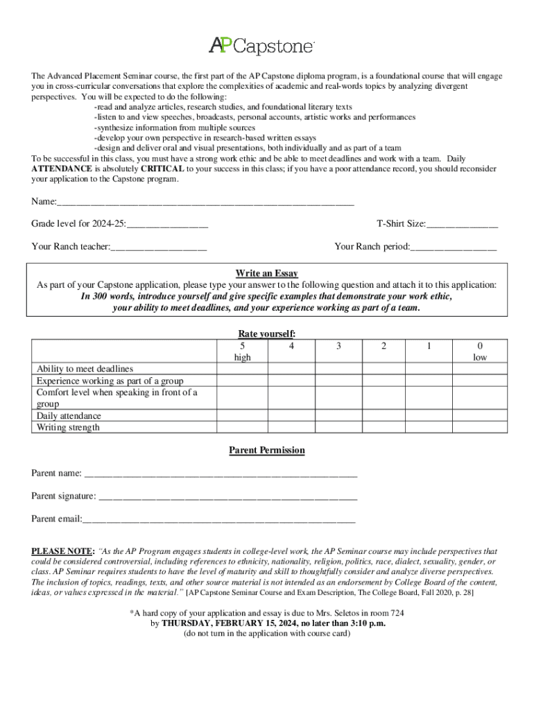 The Advanced Placement Seminar course, the first part of the AP Capstone diploma program, is a foundational course that will engage