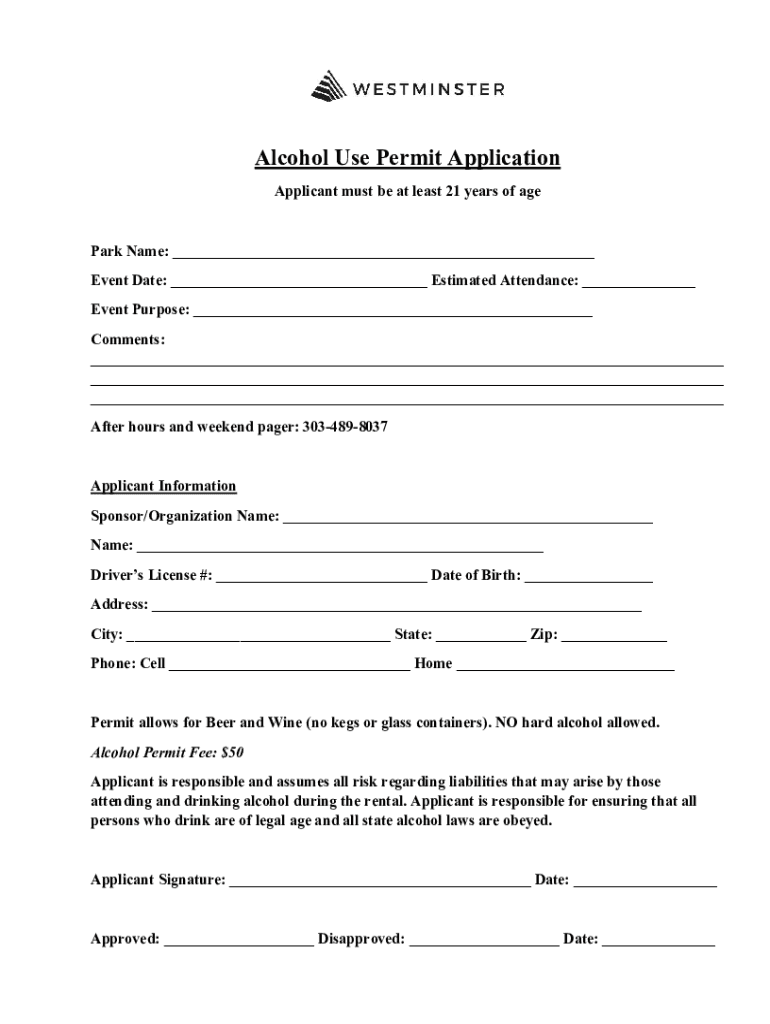 Alcohol Use Permit Application