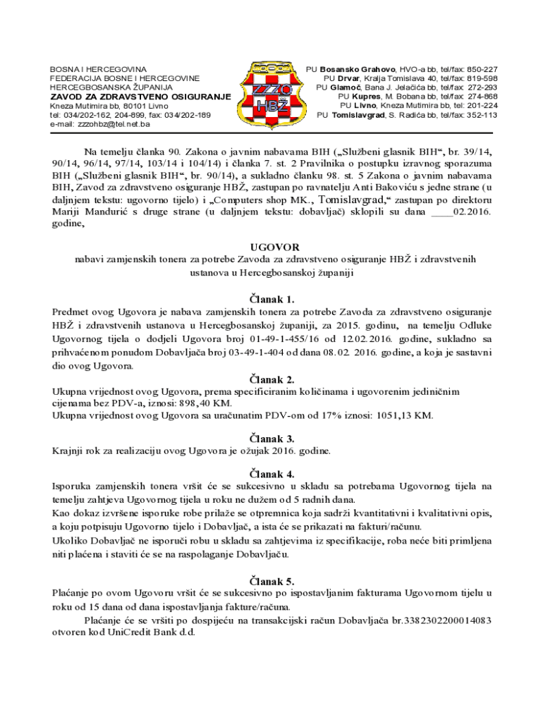 Get the free Na temelju lanka 90. Zakona o javnim nabavama BIH ...