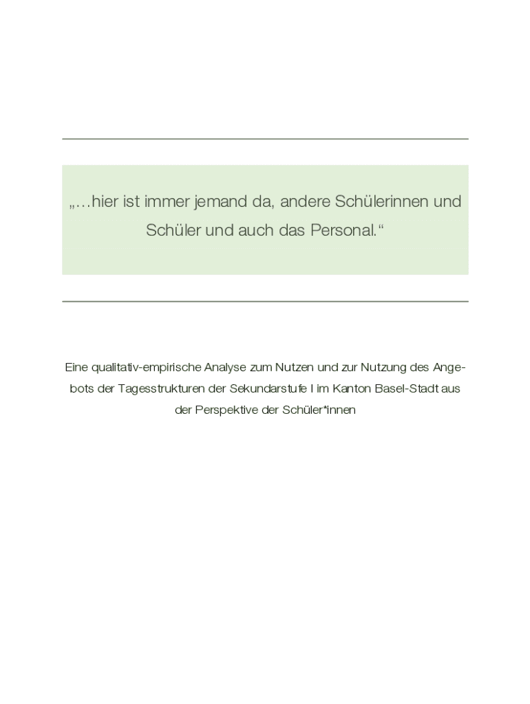 hier ist immer jemand da, andere Schlerinnen und Schler und auch das Personal.Eine qualitativempirische Analyse zum Nutzen und zur Nutzung des Angebots der Tagesstrukturen der Sekundarstufe I im Kanton