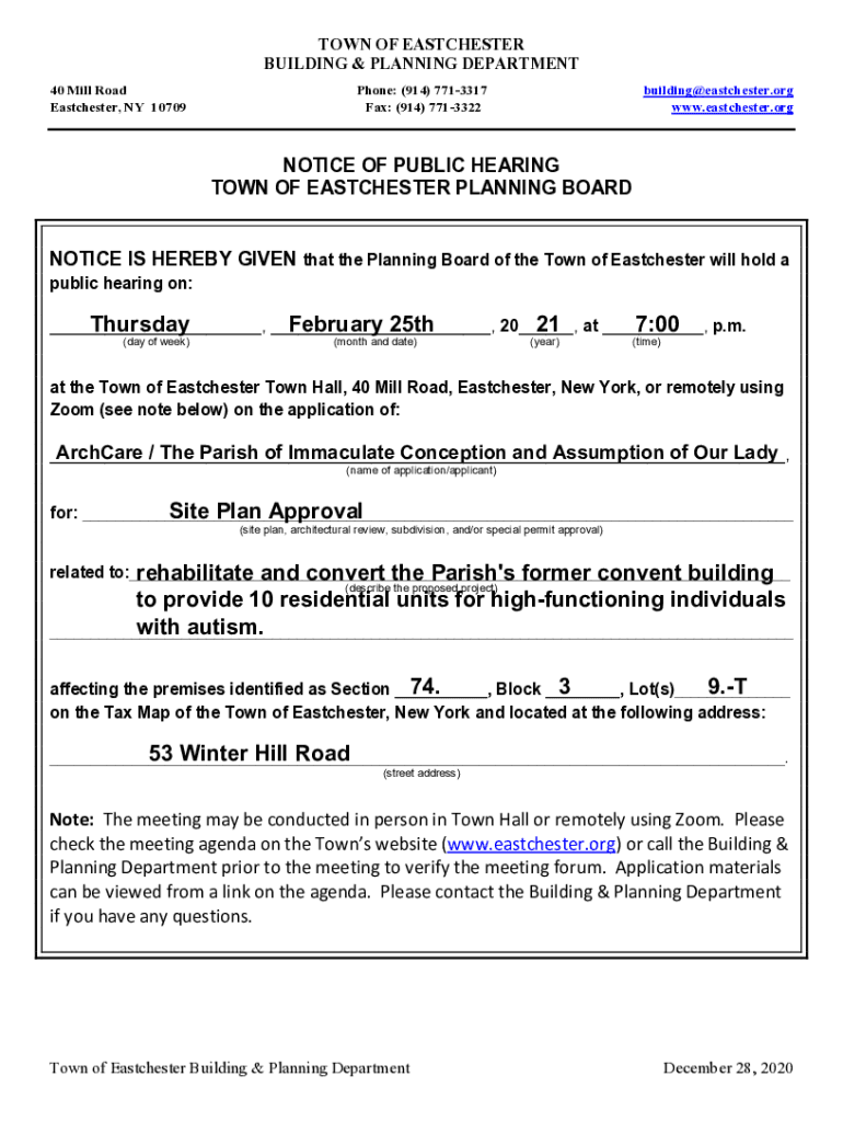 Get the free NOTICE IS HEREBY GIVEN that the Planning Board of the Town of Eastchester will hold a