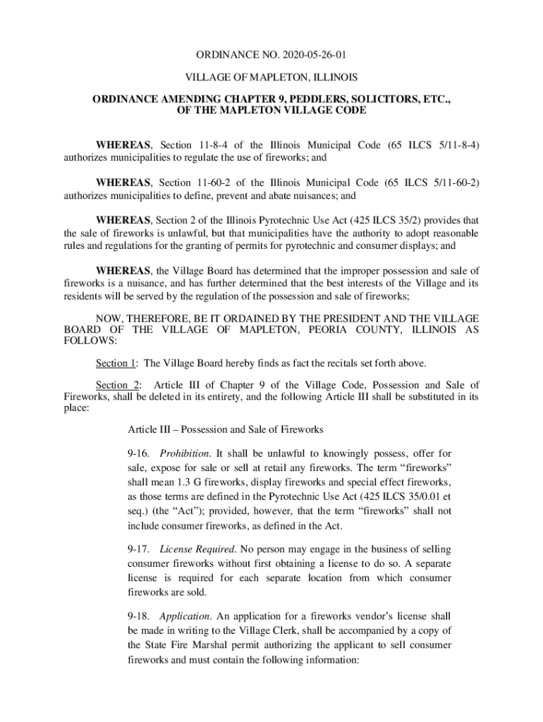 Get the free Village of Mapleton Peoria County, Illinois Village Code Booklet