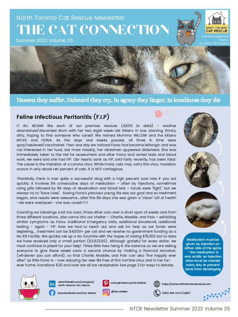 North Toronto Cat Rescue Newsletter CAT CONNECTION Canadian Registered