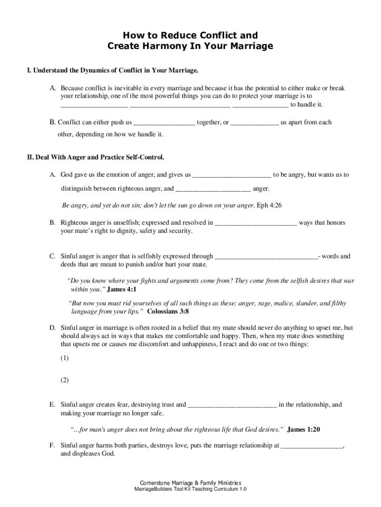 I. Understand the Dynamics of Conflict in Your Marriage. A. Because conflict is inevitable in every marriage and because it has the potential