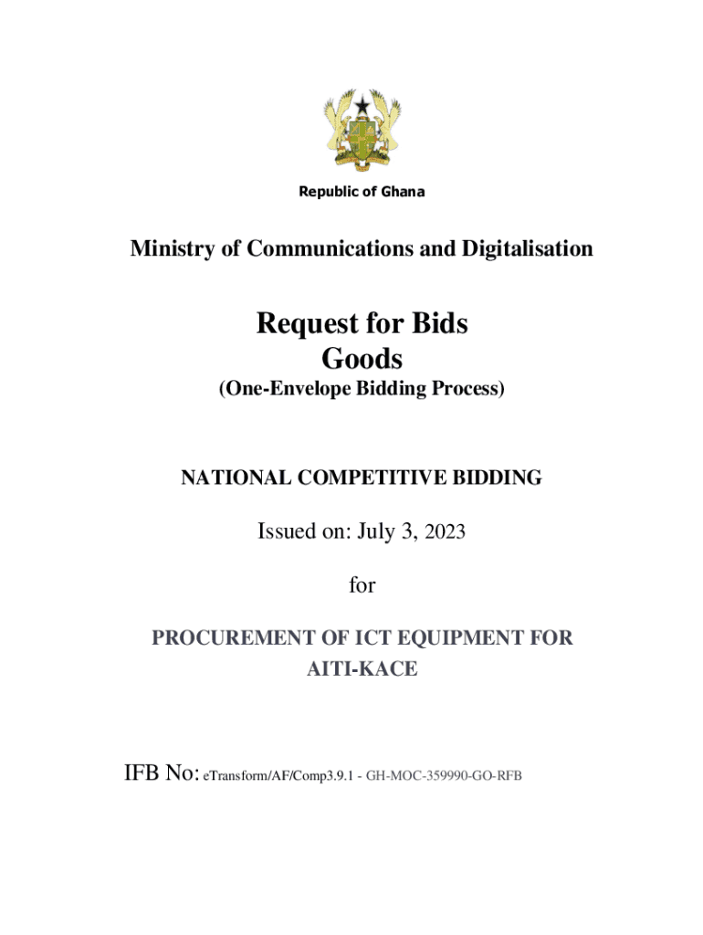 Republic of GhanaMinistry of Communications and DigitalisationRequest for Bids