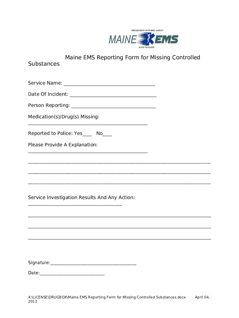 What is Maine-EMS-Reporting--for-Missing-Controlled- ... Form?