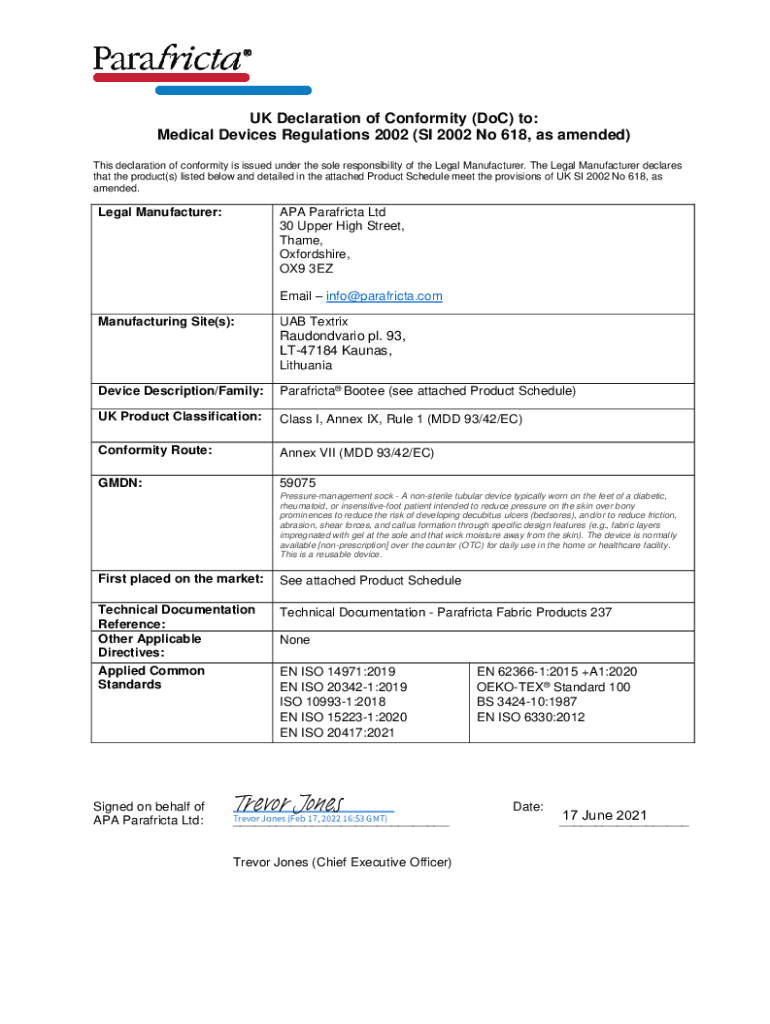 UK Declaration of Conformity (DoC) to: Medical Devices Regulations 2002 (SI 2002 No 618, as amended) This declaration of conformity is issued under the sole responsibility of the Legal Manufacturer.