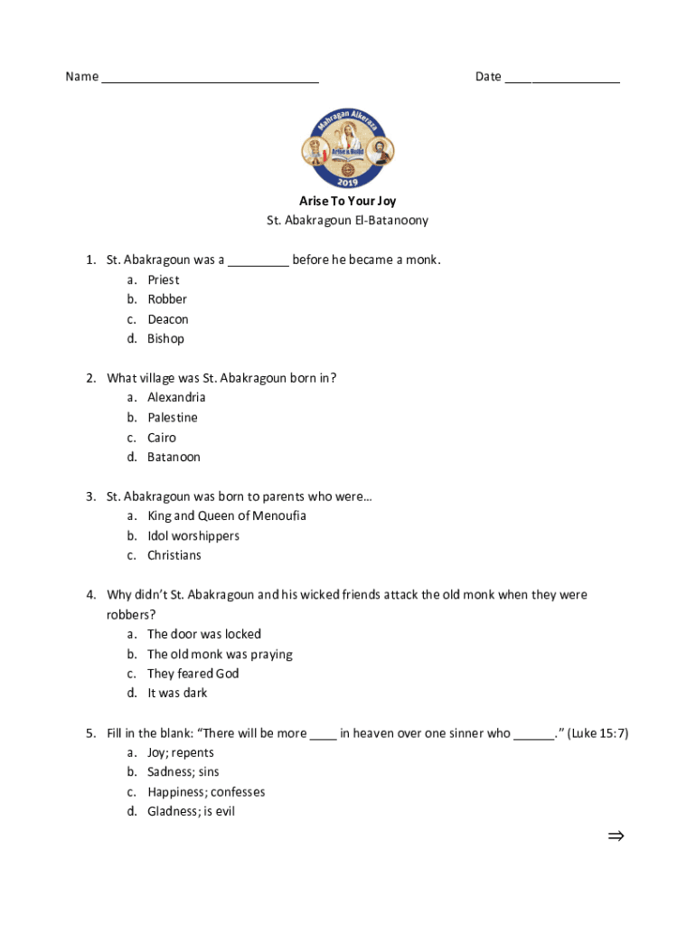 Get the free Arise To Your Joy St. Abakragoun El-Batanoony 1. ...