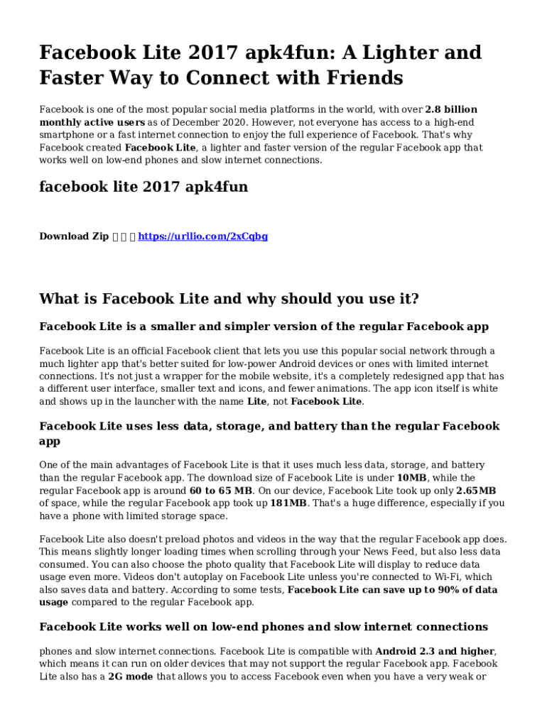 Facebook Lite 2017 apk4fun: A Lighter and Faster Way to Connect with Friends Facebook is one of the most popular social media platforms in the world, with over 2.8 billion monthly active users as