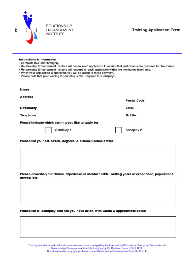 RELATIONSHIP ENHANCEMENT INSTITUTETraining Application FormInstructions & Information Complete this form throughly. Relationship Enhancement Institute will review each application to ensure that participants