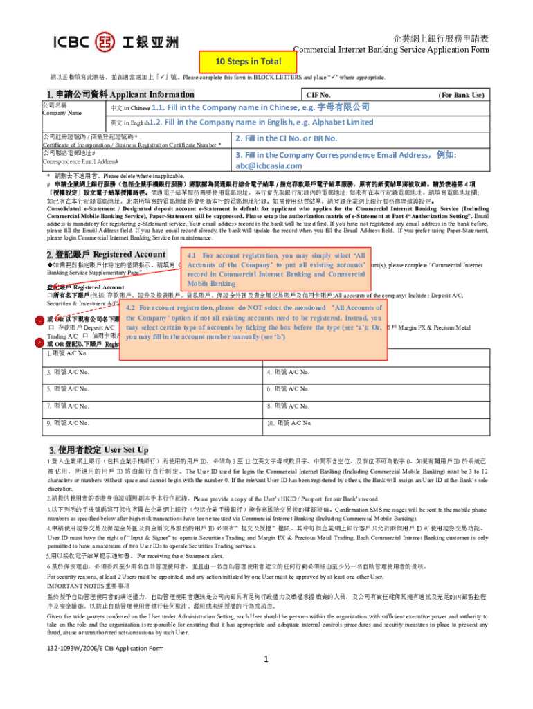 Commercial Internet Banking Service Application Formulas complete this form in BLOCK LETTERS and place where appropriate.1. Applicant Information