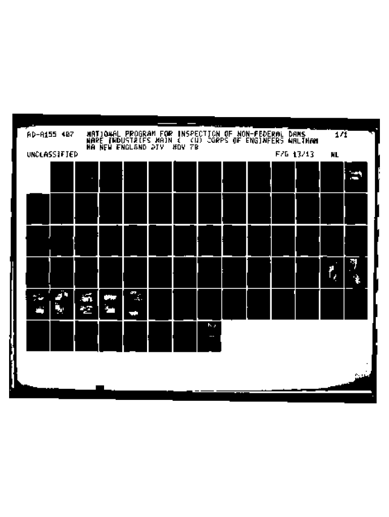 ADA155 4e7 UNCLASSIFIEDNATIONAL PROGRAM FOR INSPECTION OF NONFEDERAL DAMS WARE INDUSTRIES MAIN (. (U) CORPS OF ENGINEERS WALTHAM MA NEW ENGLAND DIV NOV 78 F/G 13/3VA, NLmEohEEmhhhhhhE mohhEEEEEohmhE