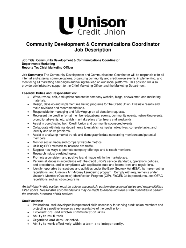 How to fill out marketing amp communications coordinator