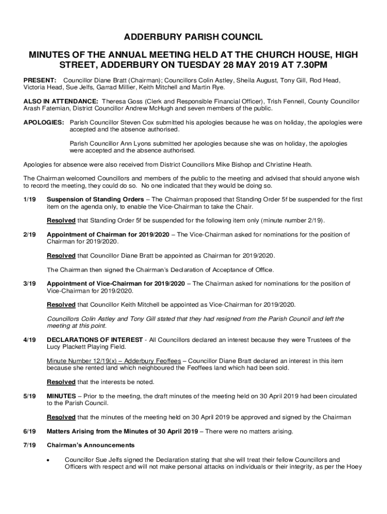MINUTES OF THE ANNUAL MEETING HELD AT THE CHURCH HOUSE, HIGH