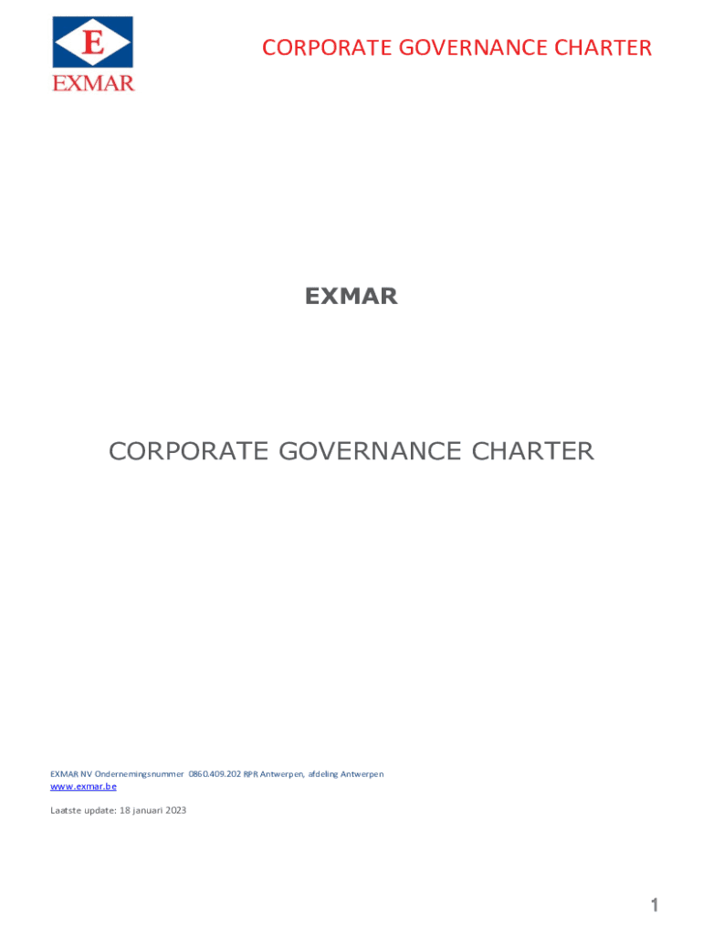 CORPORATE GOVERNANCE CHARTEREXMARCORPORATE GOVERNANCE CHARTEREXMAR NV Ondernemingsnummer 0860.409.202 RPR Antwerpen, afdeling Antwerpenwww.exmar.be Laatste update: 18 januari 20231CORPORATE GOVERNANCE
