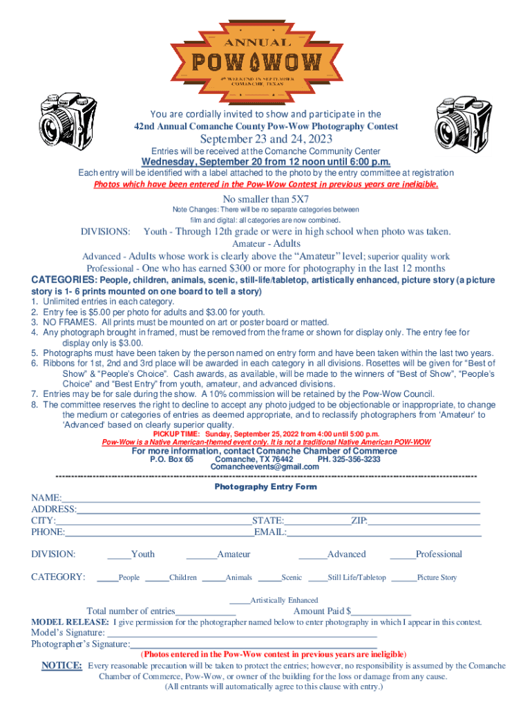 Get the free The Comanche County Pow Wow Photography Contest ...