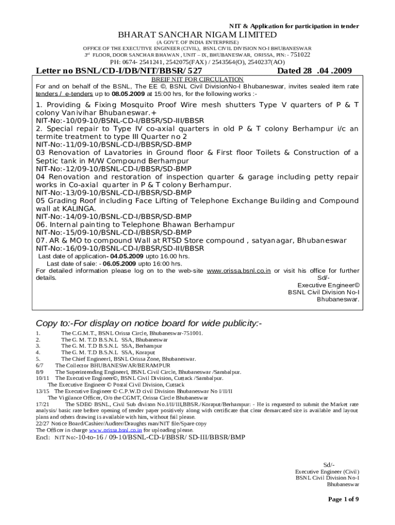 How to fill out Letter no BSNL/CD-I/DB/NIT/BBSR/ 527Dated 28