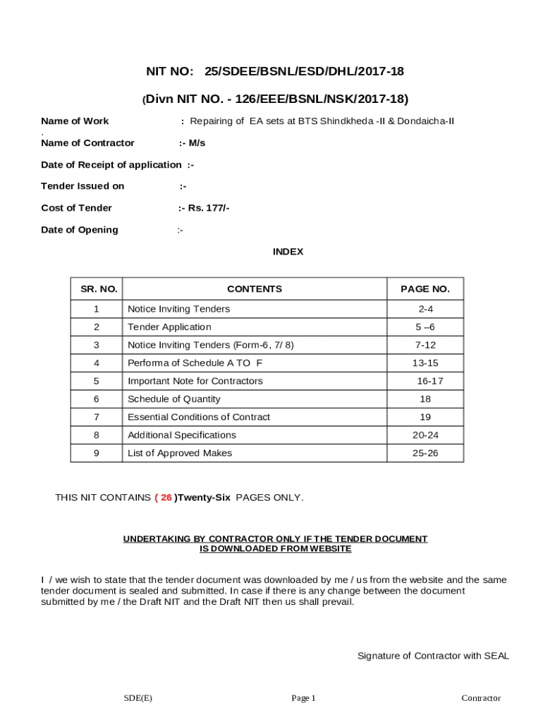 Name of Work:Repairing ofEA sets at BTS Shindkheda -II & Dondaicha-II template instructions