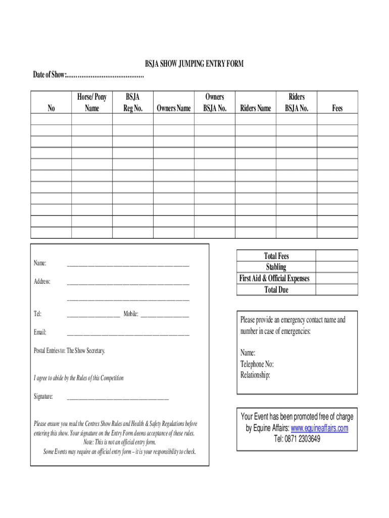 Get the free bsja show jumping entry form
