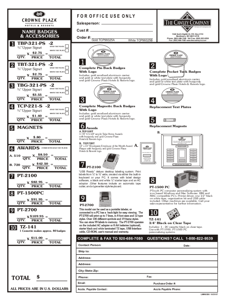 Order #:1 TBP321PS 2Gold TCP99325A1544 North Eighth St. P.O. Box 2110