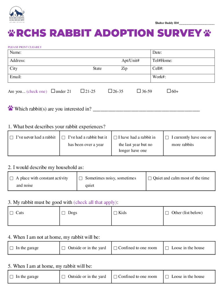 Shelter Buddy ID#___PLEASE PRINT CLEARLYName:Date:Address: