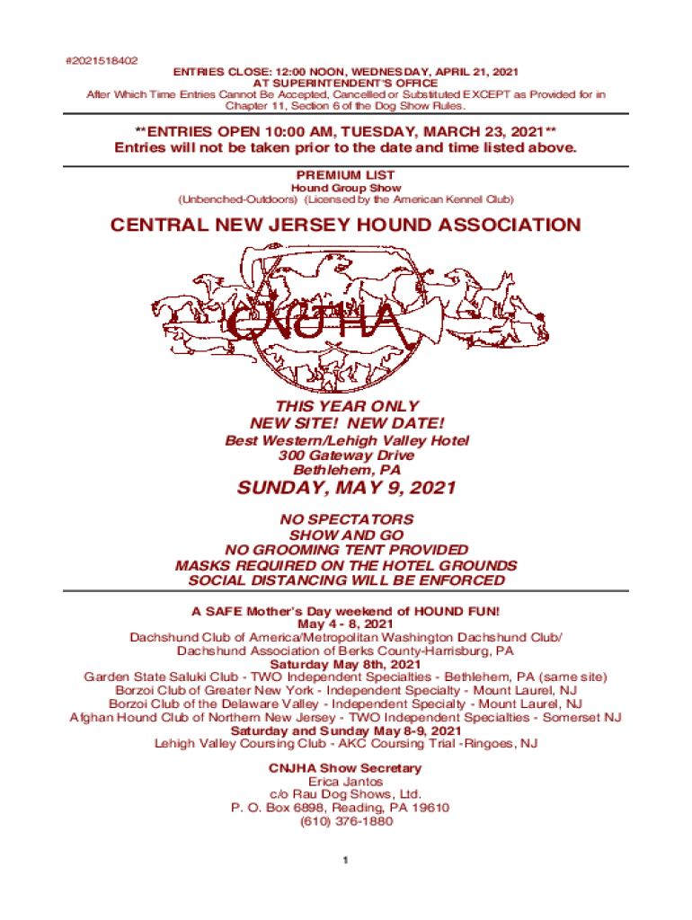 ENTRIES CLOSE: 12:00 NOON, WEDNESDAY, APRIL 21, 2021,